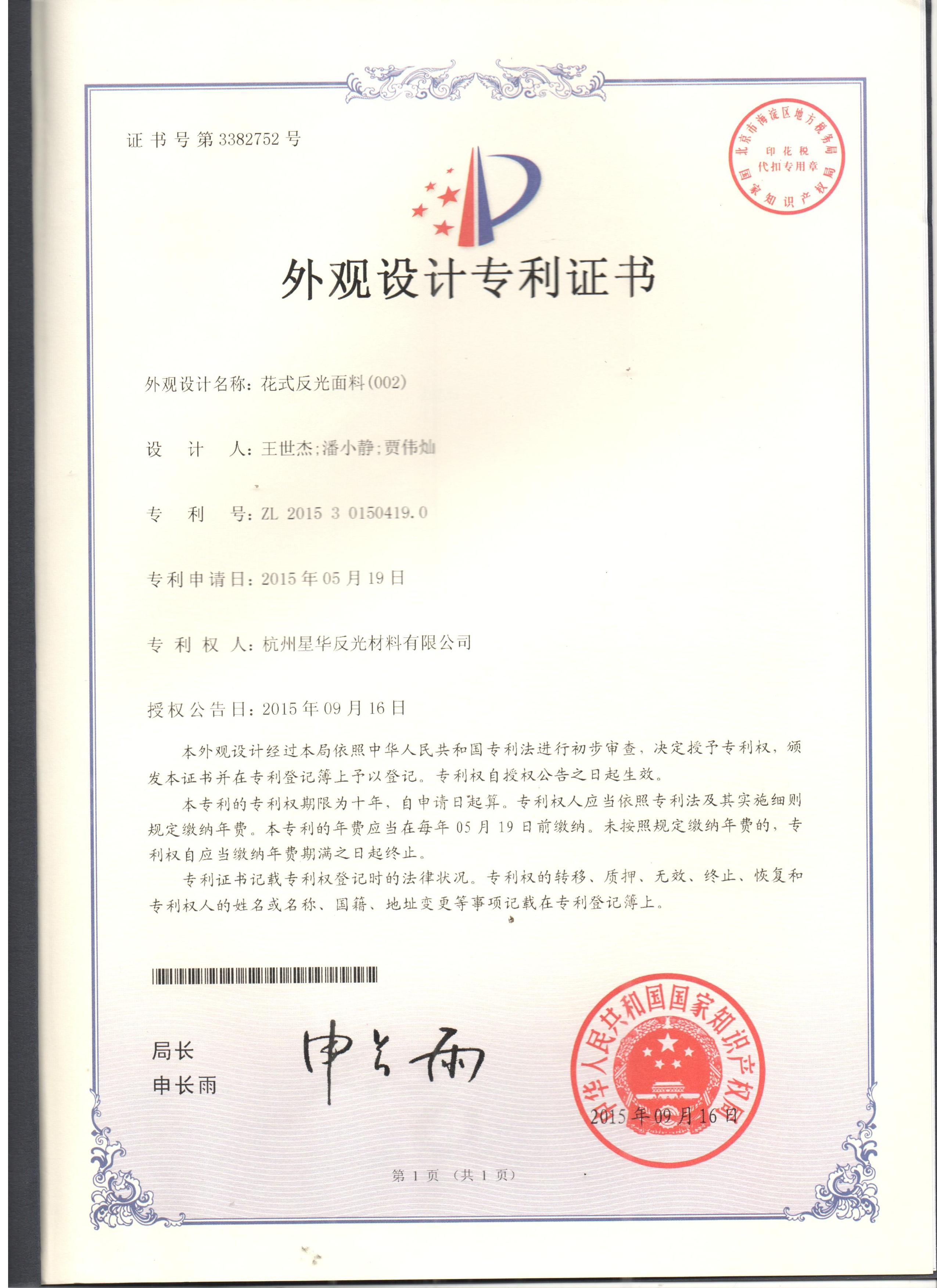 花式新半岛官网002-实用新型证书(眼睛图案)